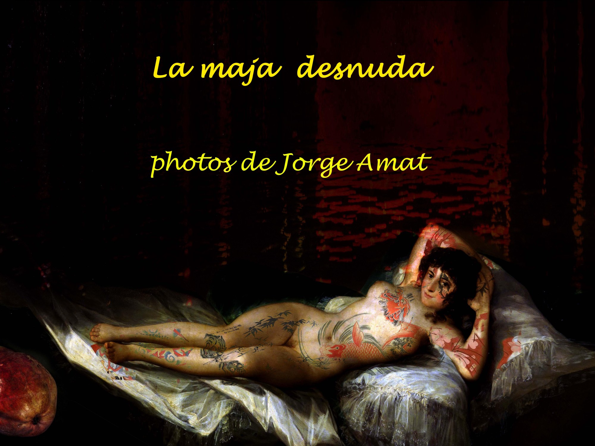 Avec « La Maja Desnuda » ,célèbre tableau de Goya , le cinéaste et photographe Jorge Amat libère les nus les plus célèbres des tableaux classiques du Prado et du Louvre. Les modèles féminins de Velasquez, Goya, Ribera, Rembrandt, Titien, Rubens, Füssli, Fragonard, Ingres, Degas, Courbet et Hans Baldung se retrouvent ainsi dans des endroits les plus insolites.